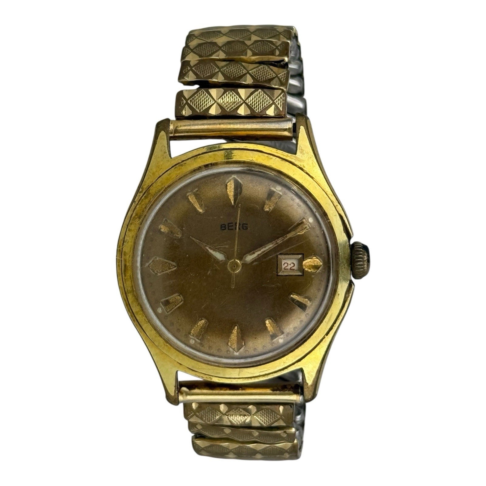 Berg Vintage Mechanical Watch 36mm w/crown Gold/Brown