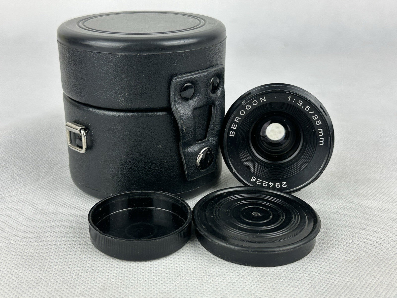 BEROGON 35MM 3.5 EXAKTA EXA TOPCON MOUNT LENS SLR CAMERA WITH CASE AND CAPS