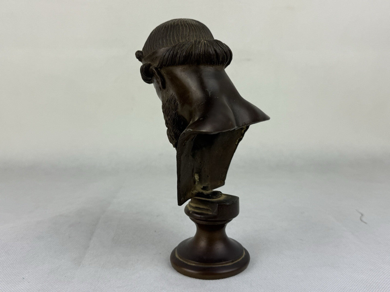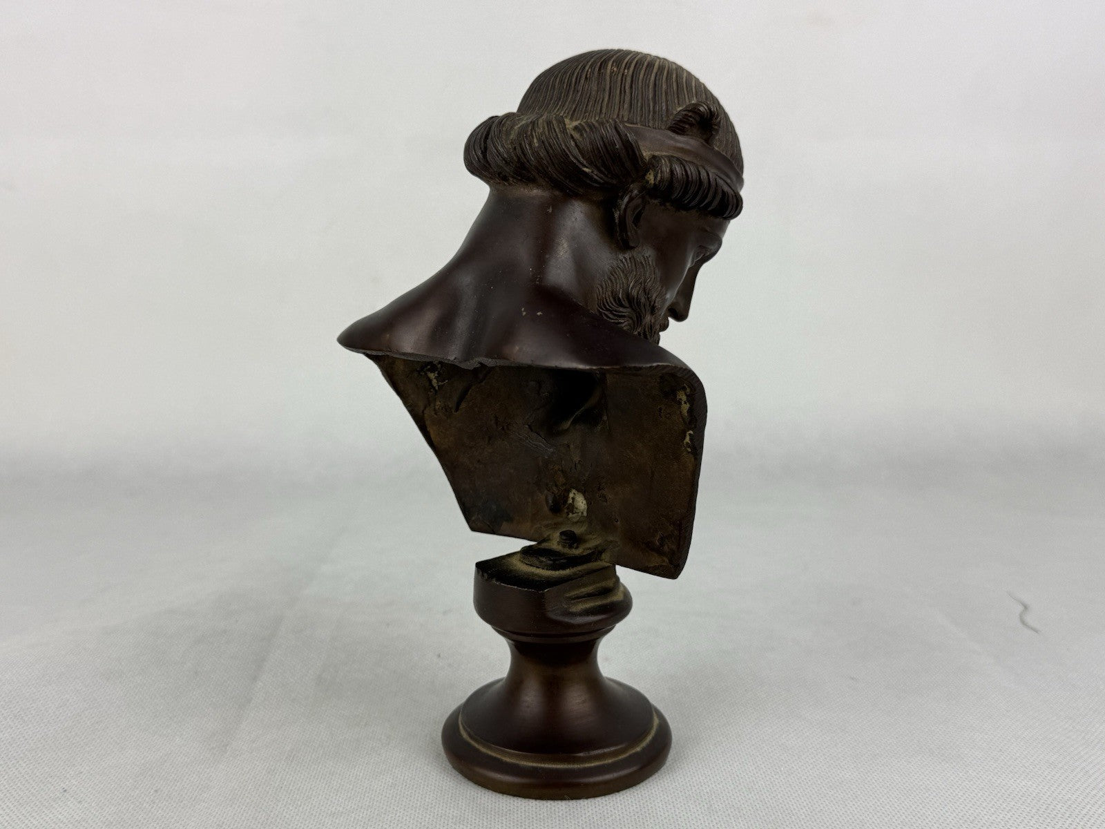 Based on the larger-than-life ancient original found in the Villa dei Papiri in Herculaneum and now housed in the National Archaeological Museum in Naples. This exquisitely crafted portrait bust of the young, bearded god with a tilted head and a headband around his carefully styled hair.
