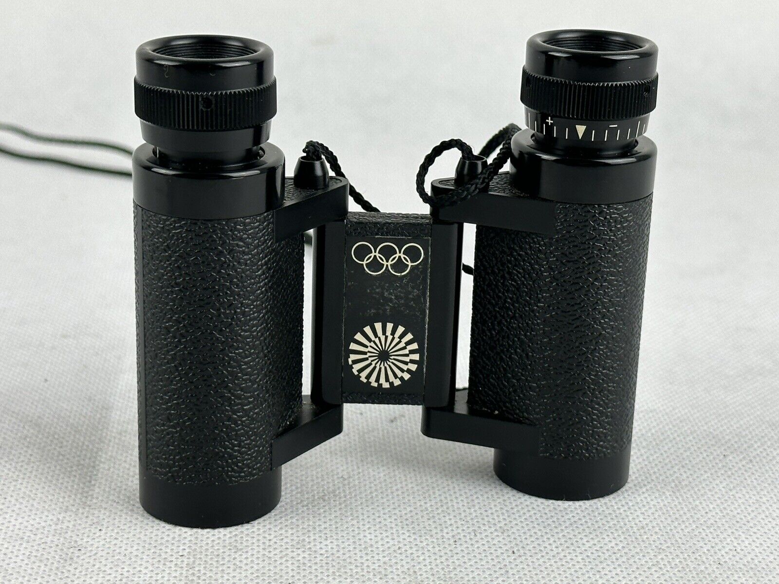 Experience the world through the lenses of these rare Carl Zeiss 8x20 Olympia Munich 1972 Binoculars. Made in Germany, these binoculars are of the highest quality. The maximum magnification of 8x allows for a clear and detailed view of distant objects.