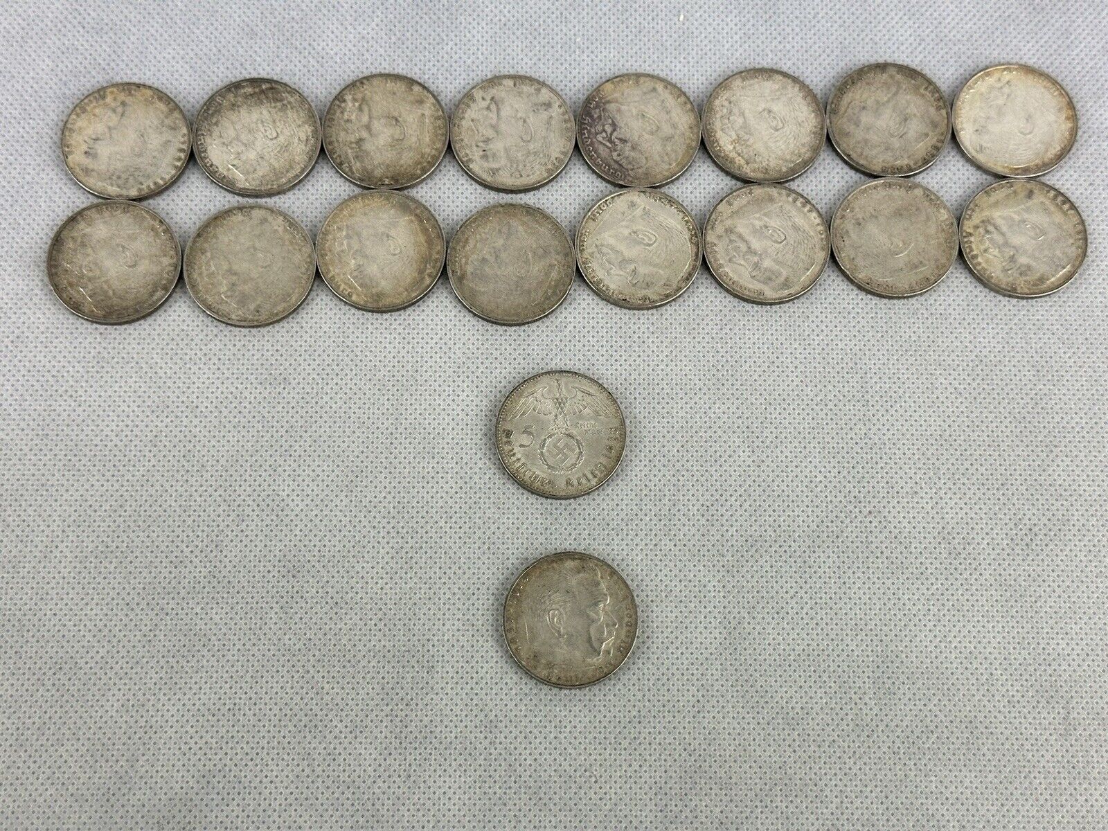 GERMAN 18x 5 REICHSMARK 1936-1938 Silver 3RD Reich WW2 Coin Swastika MARK Lot