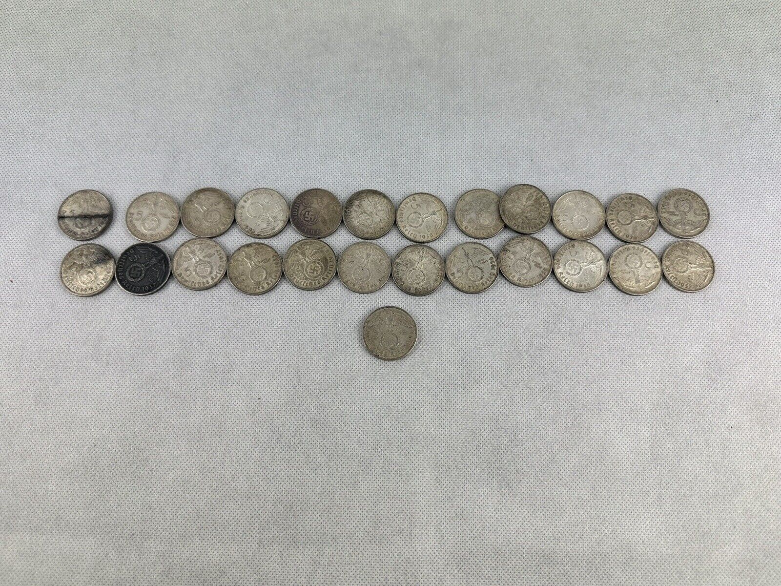 GERMAN 25x 5 REICHSMARK Swastika 1936-1938 Silver 3RD Reich WW2 Coin MARK Lot