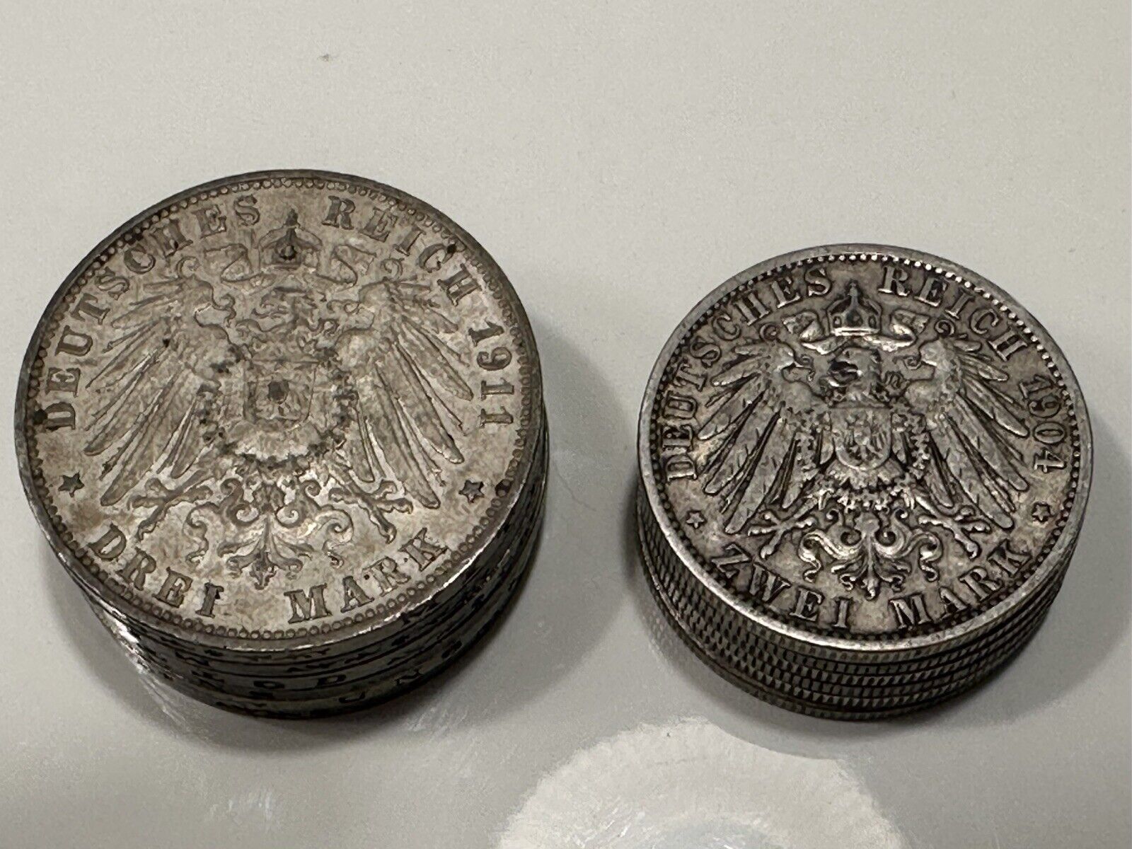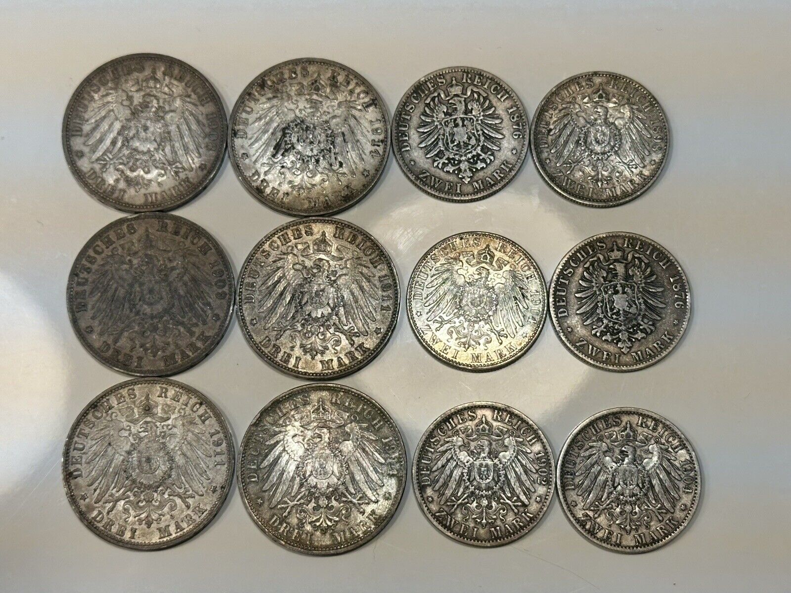German Reich 3 & 2 Mark Silver Coins 12x Kaiserreich 1876-1914