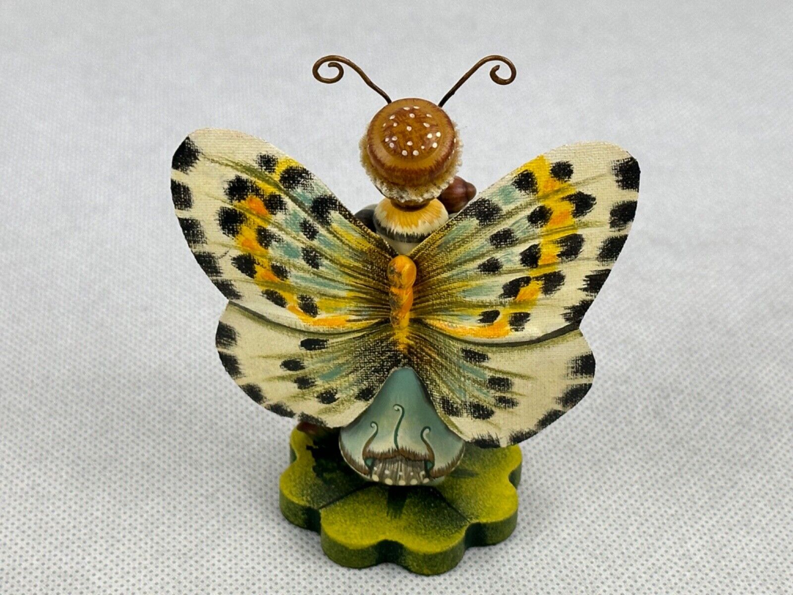 Discover the exquisite craftsmanship of Käthe Wohlfahrt with this stunning Stachelbeerfalter gooseberry butterfly figurine. A treasure from their Limited Editions collection, this piece is intricately painted, bringing to life the delicate beauty of the butterfly with vivid multicolor accents that showcase the artist's skill. Crafted from wood in 1998, this figurine is a testament to the renowned German craftsmanship that Käthe Wohlfahrt is known for. It's a limited edition item, marked at 527 out of 700, making it a coveted collectible for enthusiasts and connoisseurs alike. Ideal for any occasion, it's a charming addition to any collection that celebrates the artistry of fine wooden figurines.