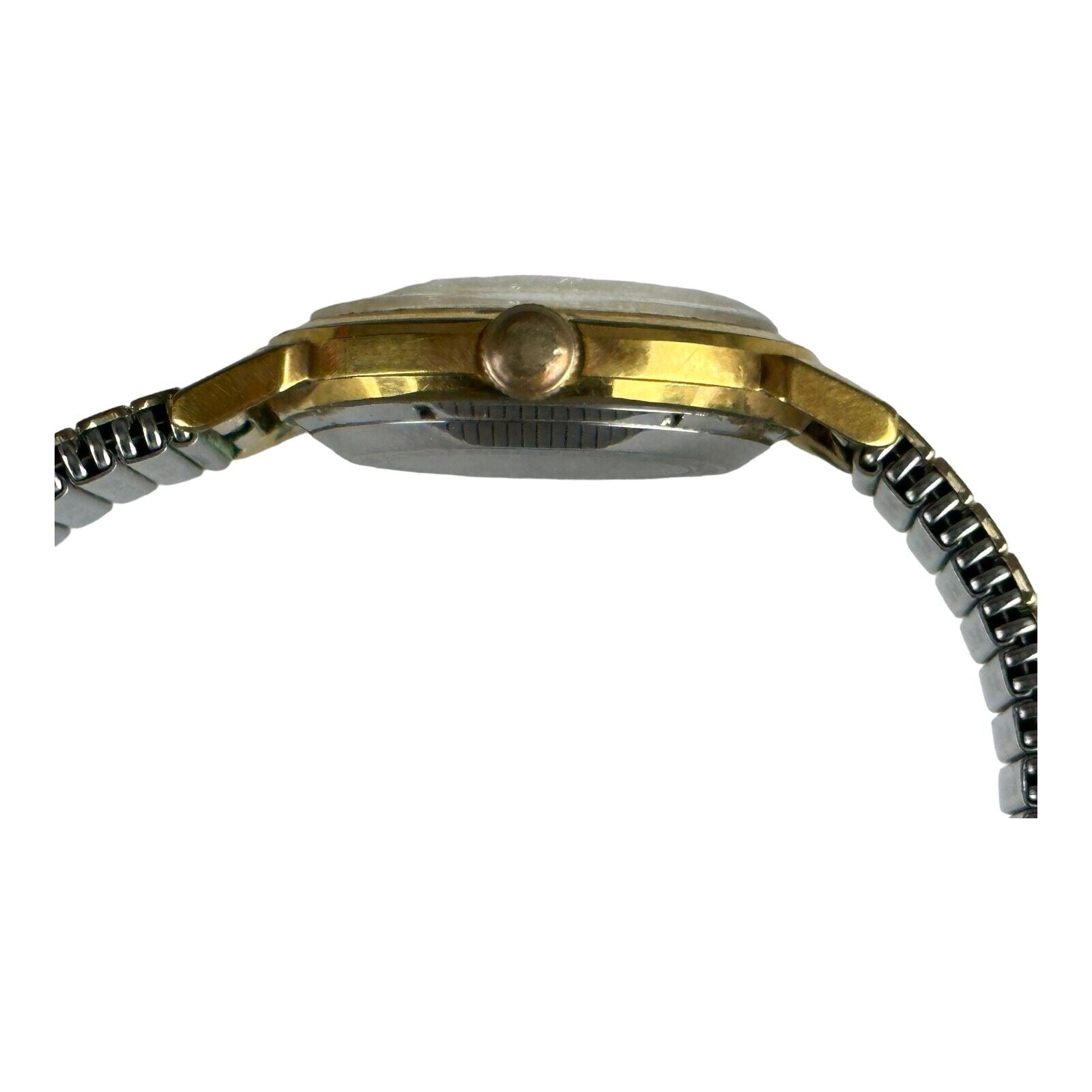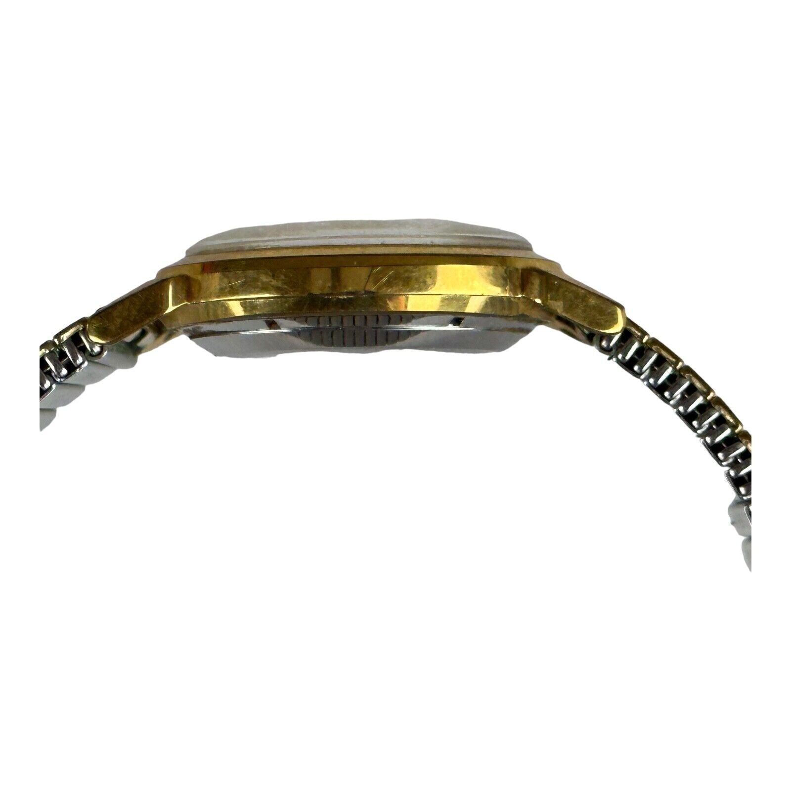 This vintage men's wristwatch from Junghans is a true antique piece that will elevate any outfit. With a beautiful gold-plated stainless steel case and band, this watch has a classic and elegant look. The dial is a stunning gold color, matching the rest of the watch's design perfectly.