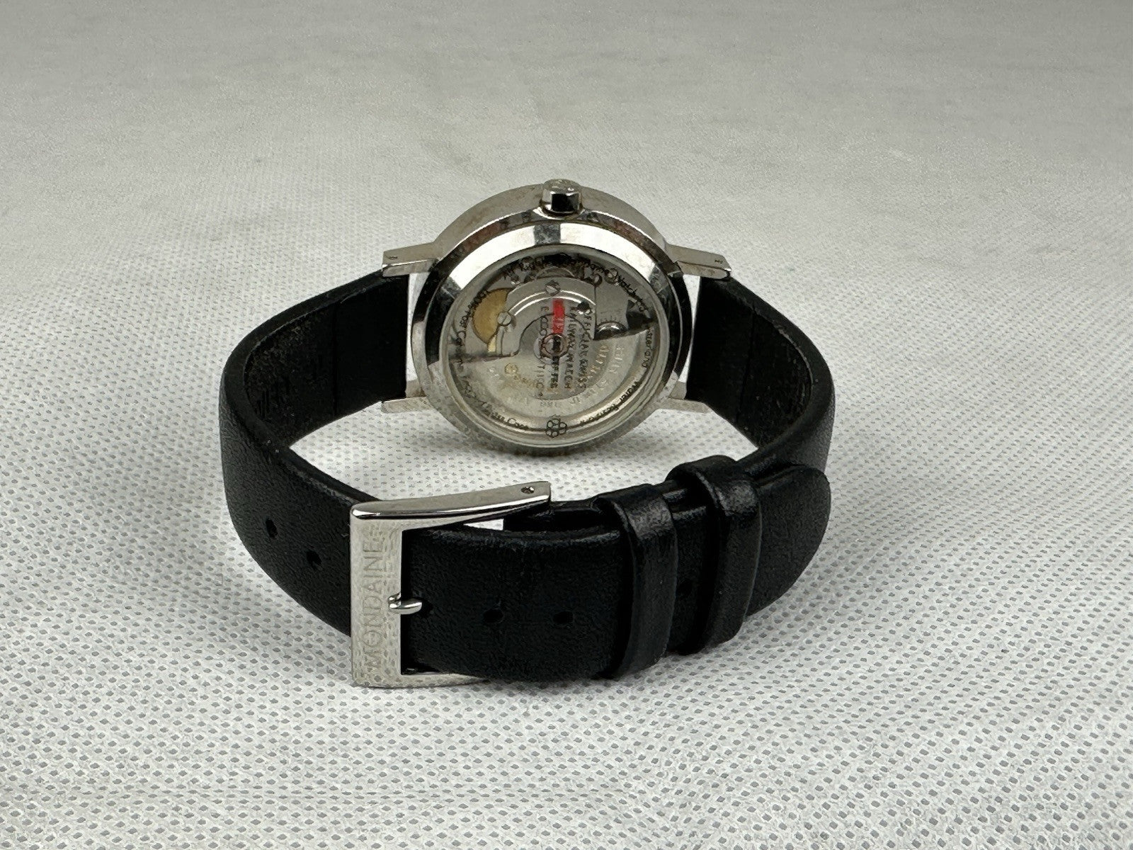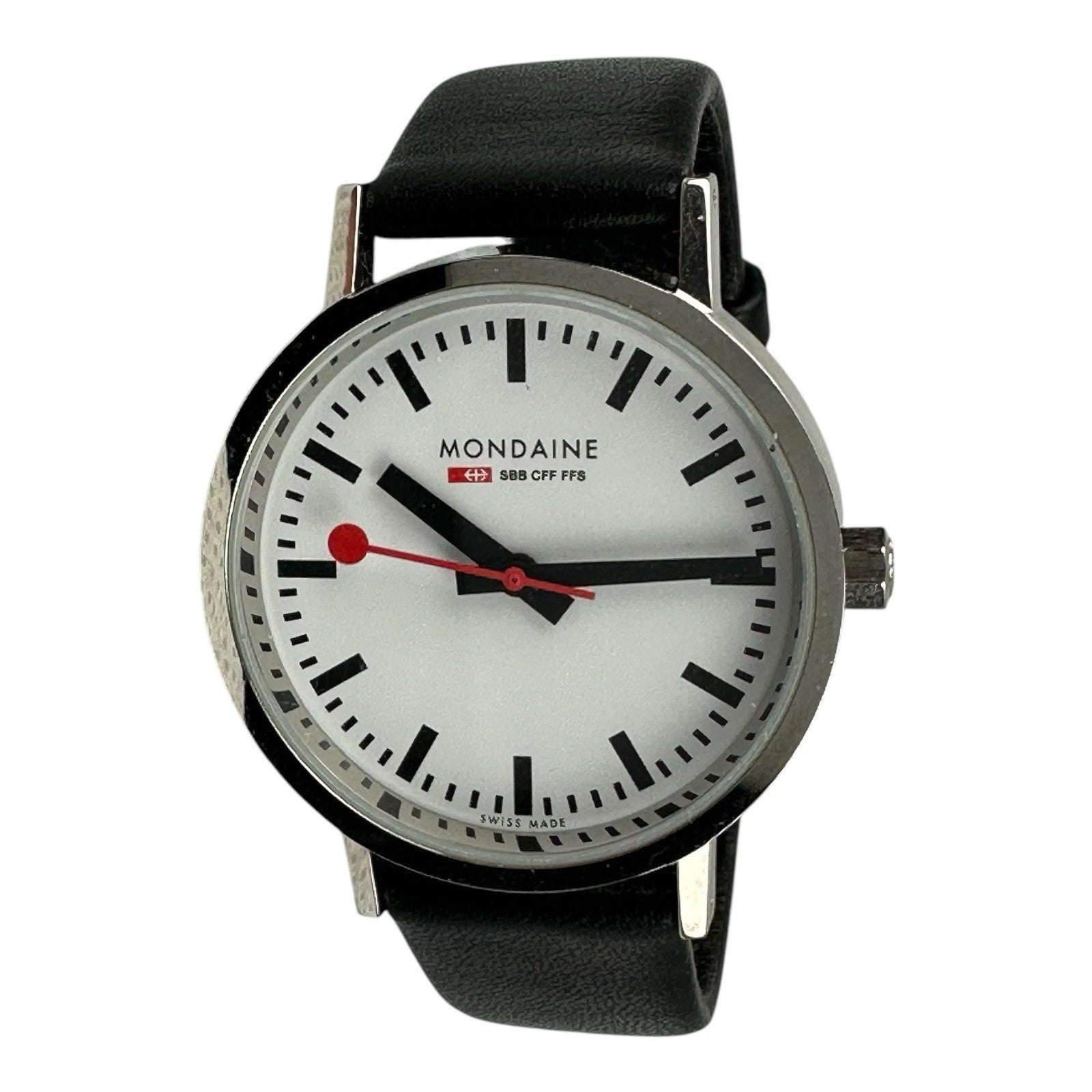 Mondaine Womens Watch Railway Swiss Automatic White Dial Black Leather Band 33mm