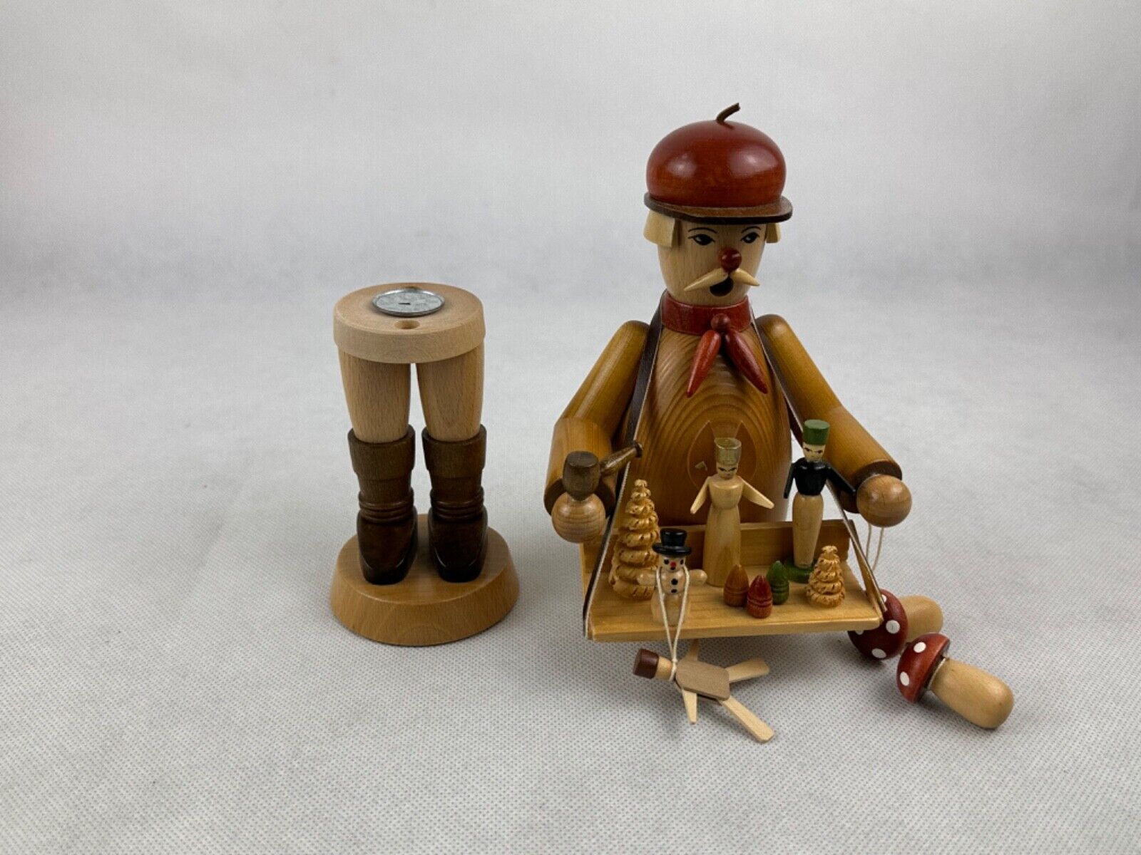 Original Erzgebirge Smoker Toy Dealer Spielwarenhändler 9.8" 25cm Handmade Germa