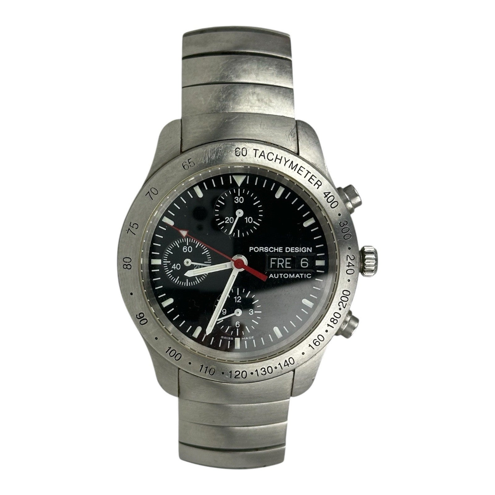 This is a luxurious and classic wristwatch made by Porsche Design, featuring a 43mm silver case and a tachymeter bezel. The watch is Swiss made and has an analog display. It is a diver and sport watch, with features such as a chronograph and a tachymeter. The movement is mechanical and automatic, making it a high-quality timepiece. The watch is perfect for men who appreciate luxury and style.