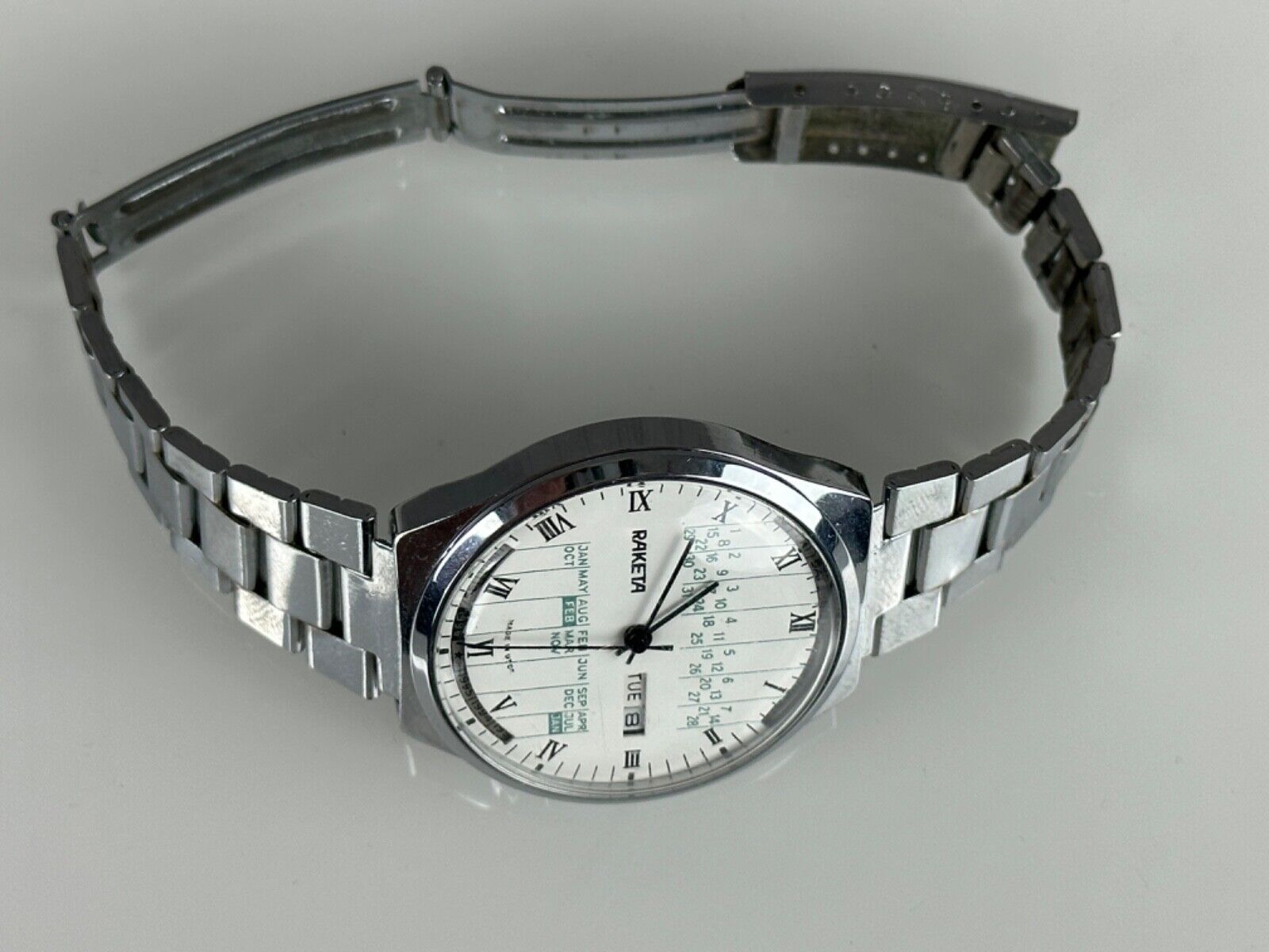 A one-of-a-kind accessory to elevate any outfit, this Raketa watch is perfect for those looking for a functional piece with a timeless design.