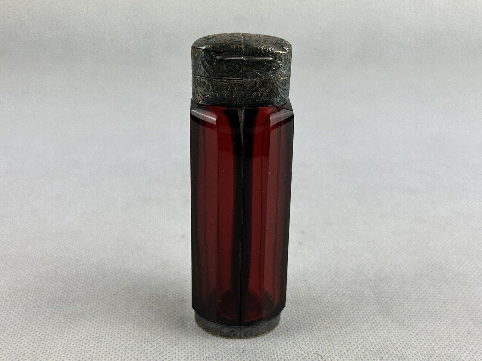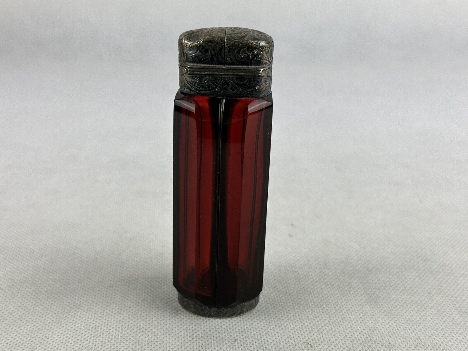 Sampson Mordan & Co Perfume Bottle Vinaigrette Rubin Red Two Slots Glass Antique