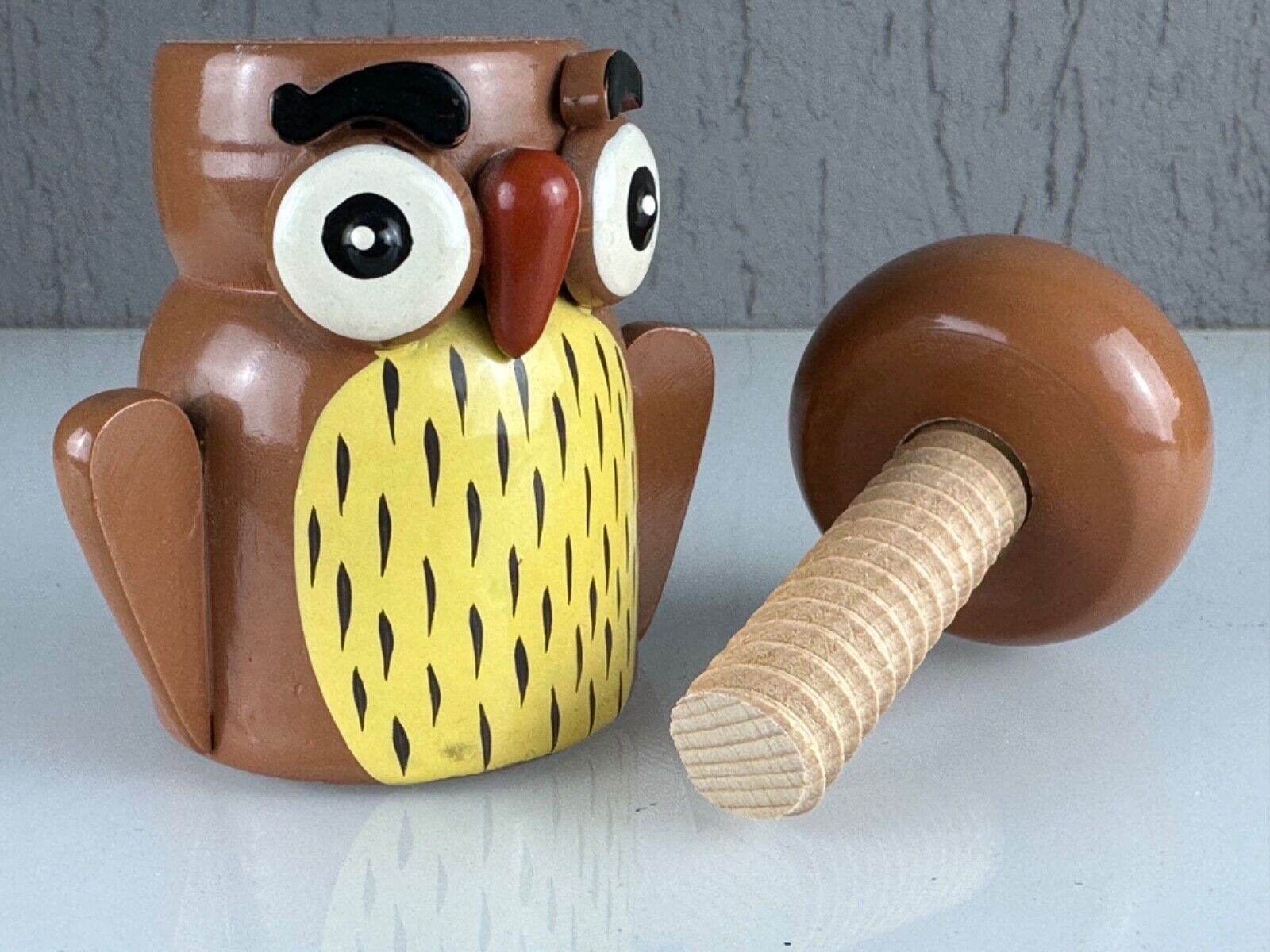 Sevi Nutcracker Wooden Owl Rotating Thread Brown made in Tirol, Italy Vintage