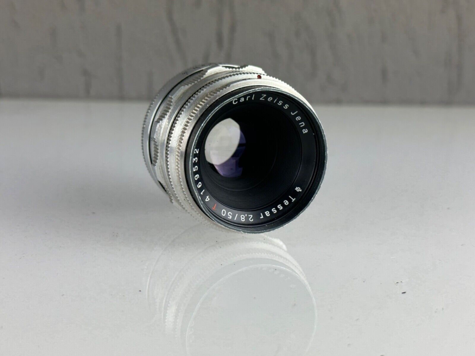 Very rare Lens Carl Zeiss Jena Tessar f2.8 50mm RED T M42 Silver made in Germany